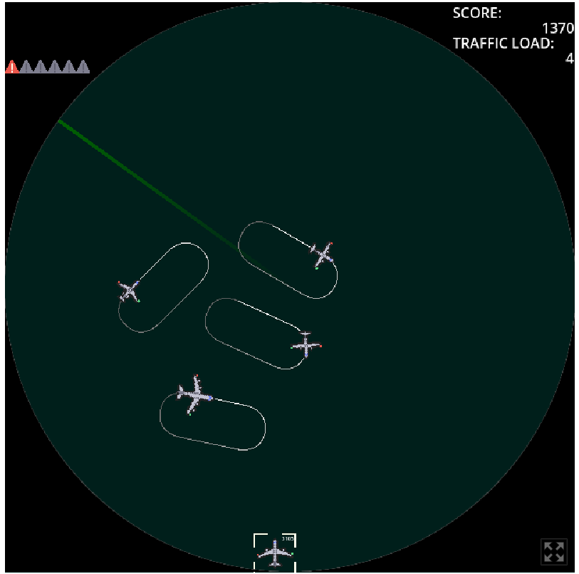 Drop loops in front of aircraft. If two planes collide the use TCAS maneuver and it counts as a miss. If an aircraft leaves the airspace then a miss is also counted. 6 misses is a game over